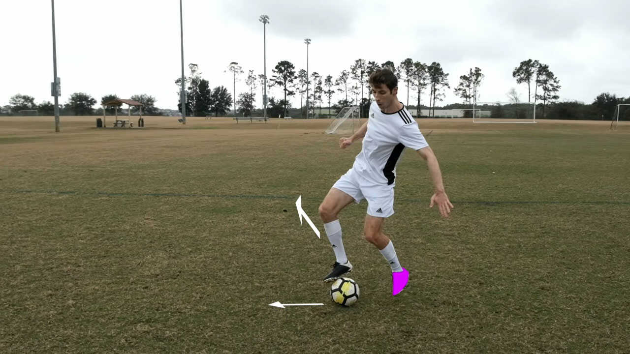 - Flick and Heel khi đang di chuyển: Áp dụng trong lúc chạy cắt mặt hoặc thoát pressing ở tốc độ trung bình.